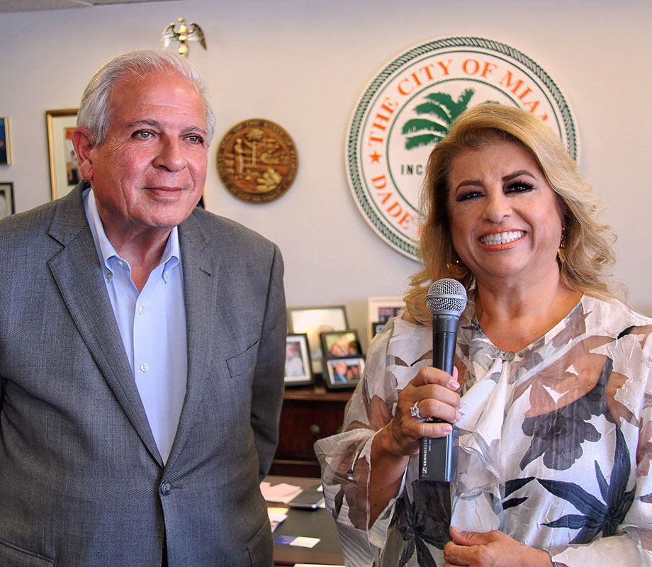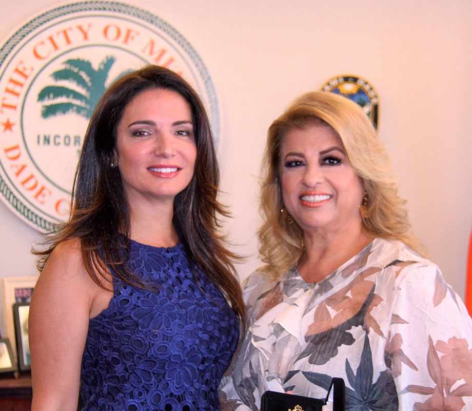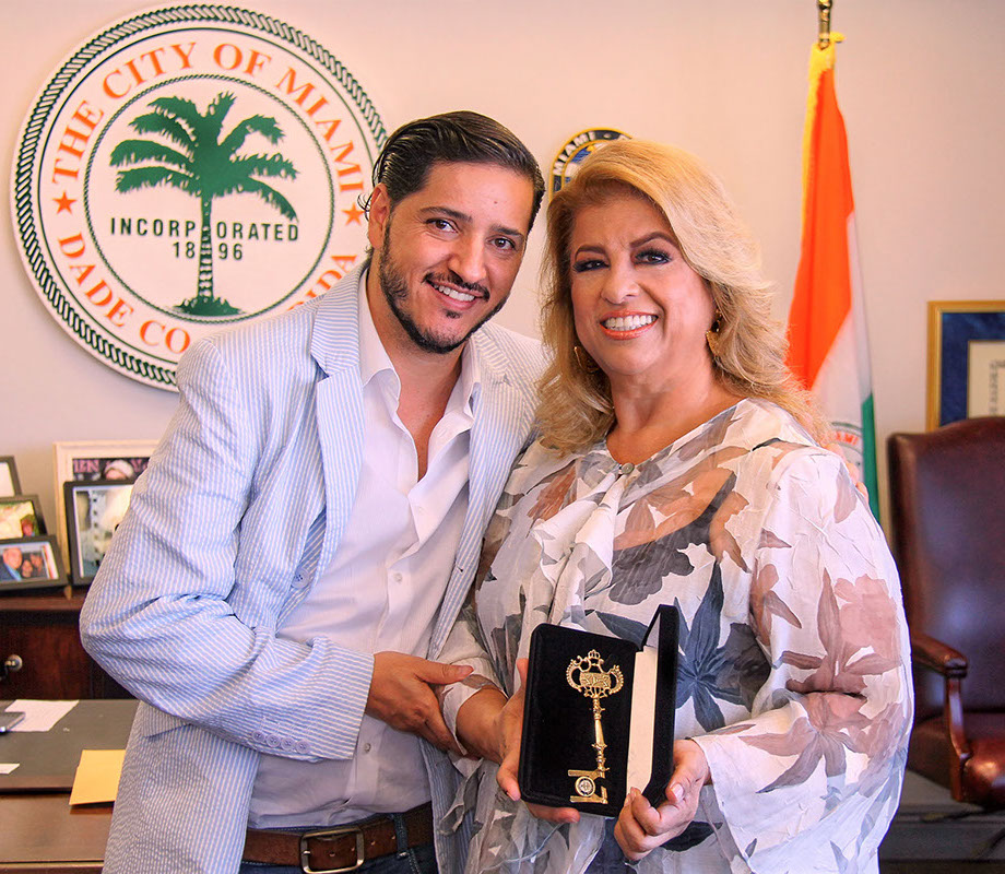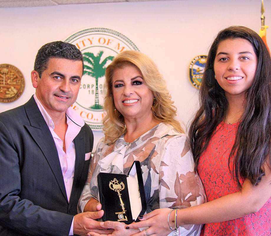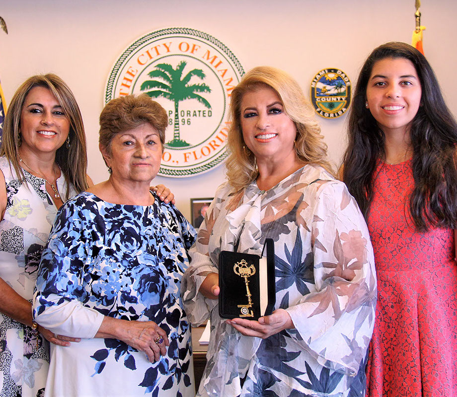 At a private ceremony at the offices of the mayor of the city of Miami, Tomas Regalado. She was given the keys of the city to Gloria Hincapie, in the company of her family and friends, for the 30 years of professional life and her contribution to the society of Miami