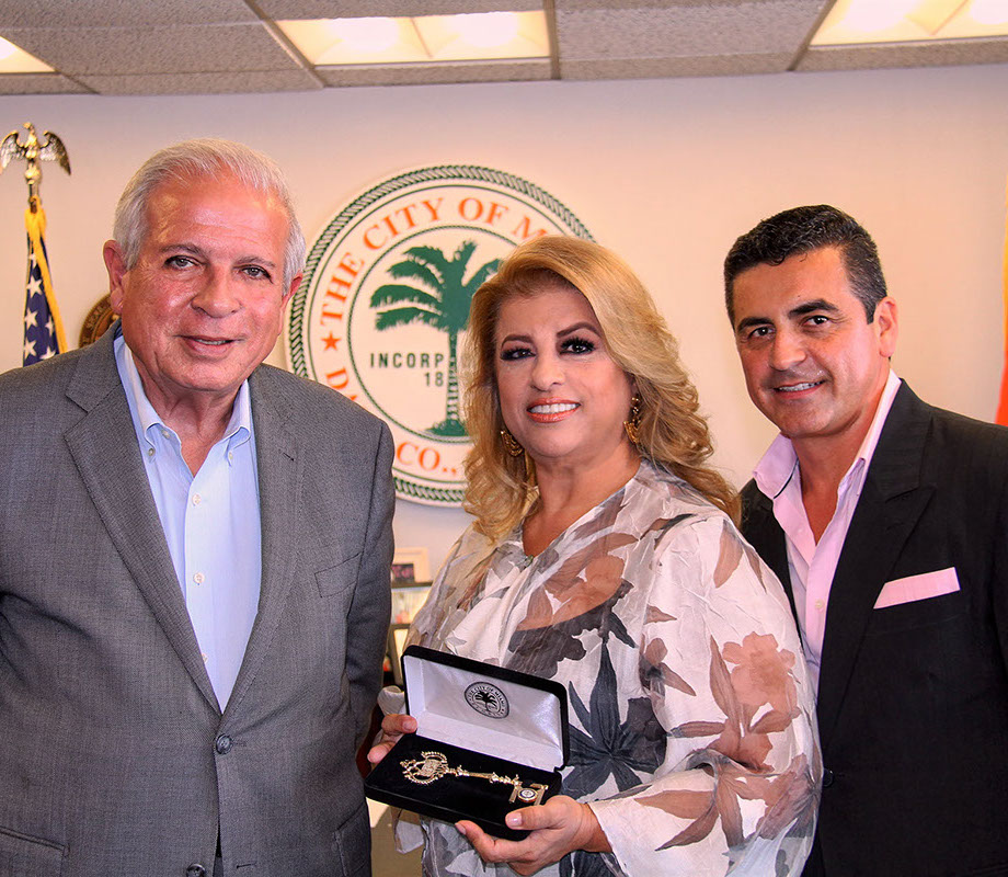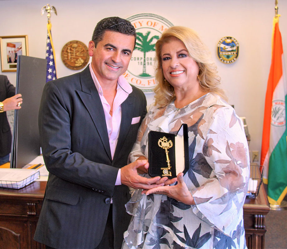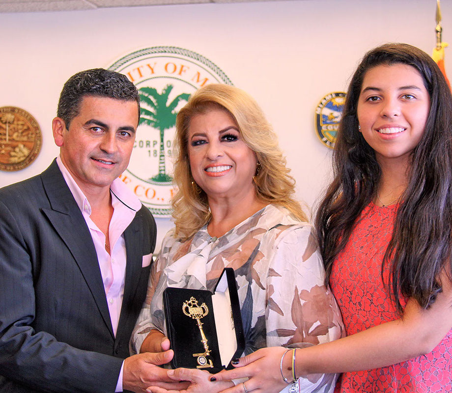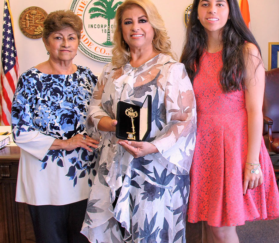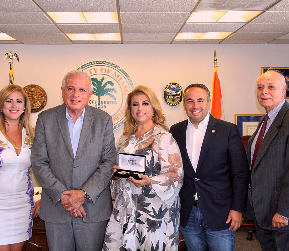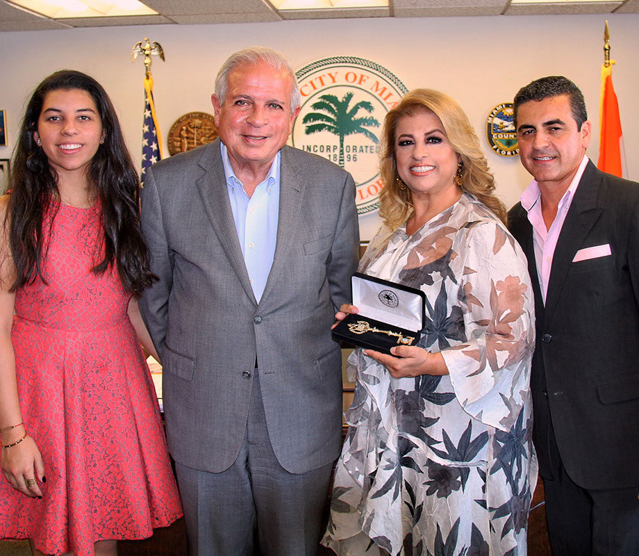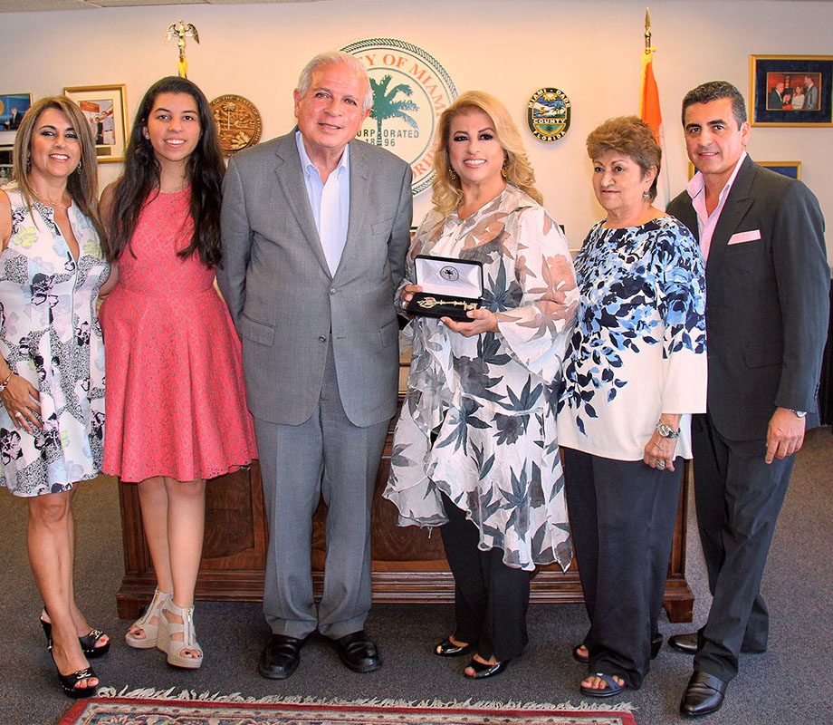 En una ceremonia privada en las oficinas del alcalde de la ciudad de Miami, Tomas Regalado. Se le entregaron las llaves de la ciudad a Gloria Hincapie, en compañia de sus familiares y amigos, por los 30 años de vida profesional y su aporte a la sociedad de Miami