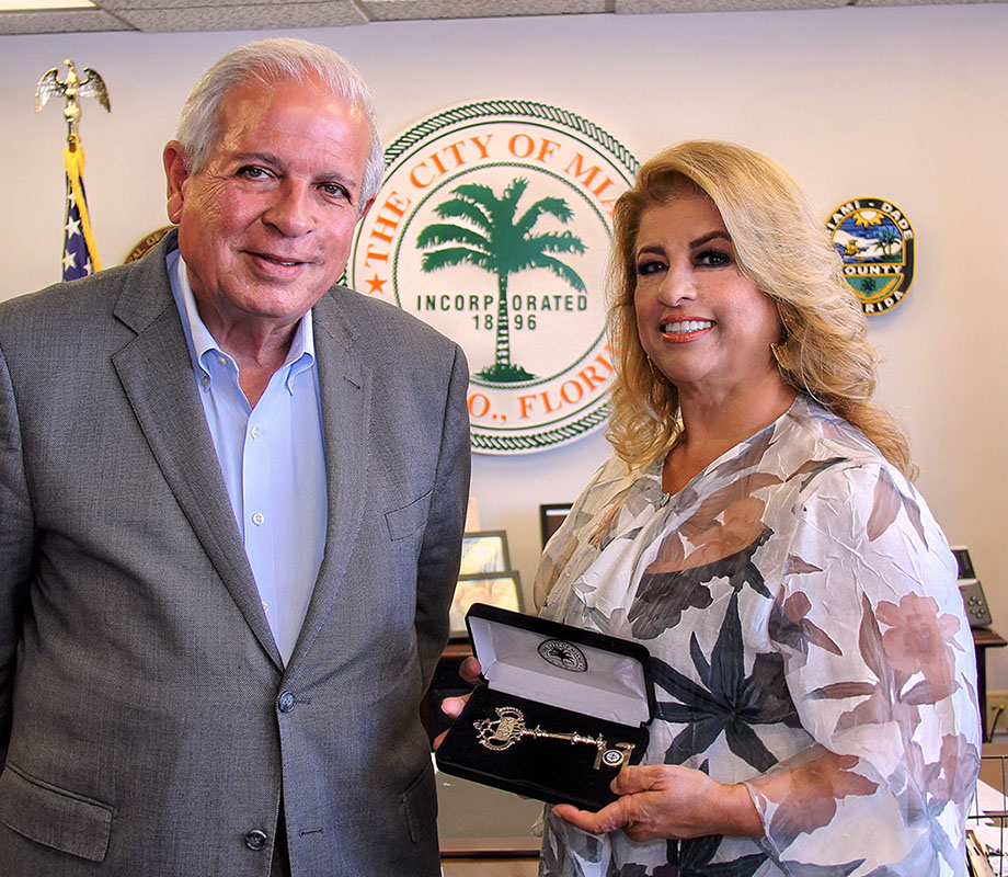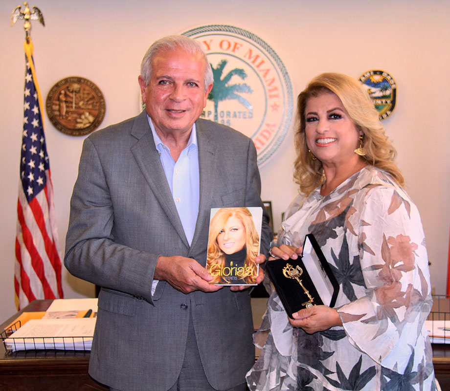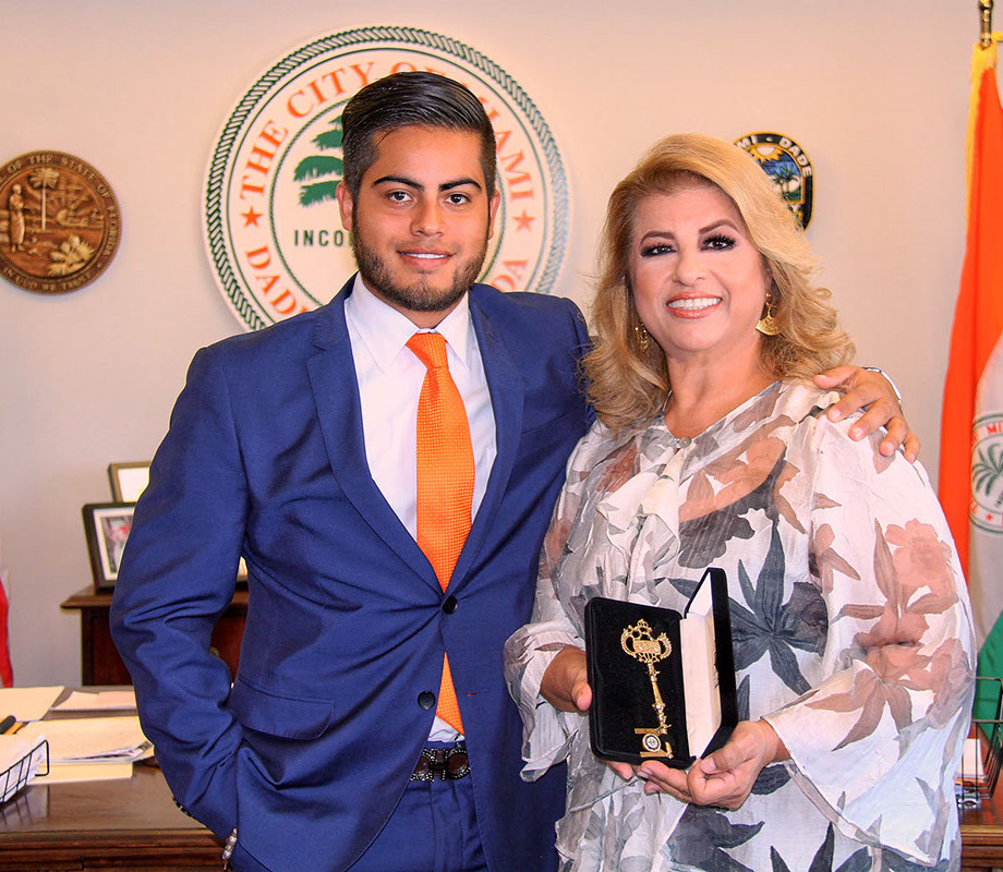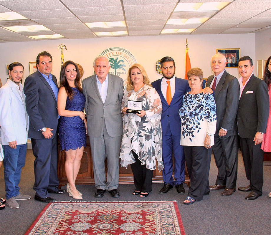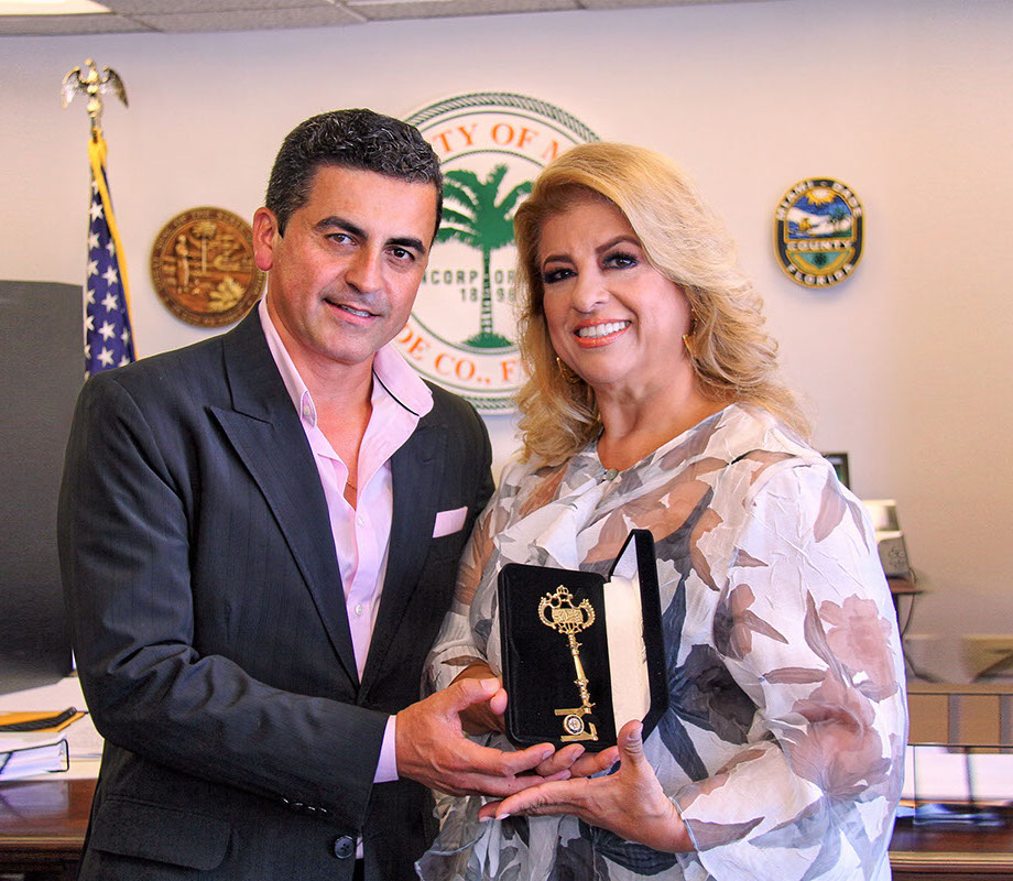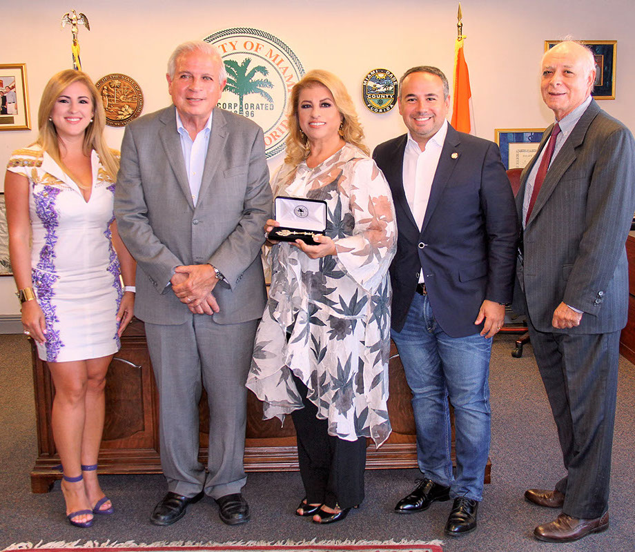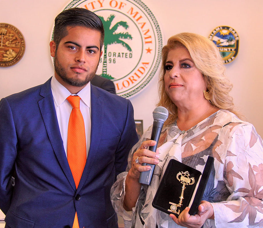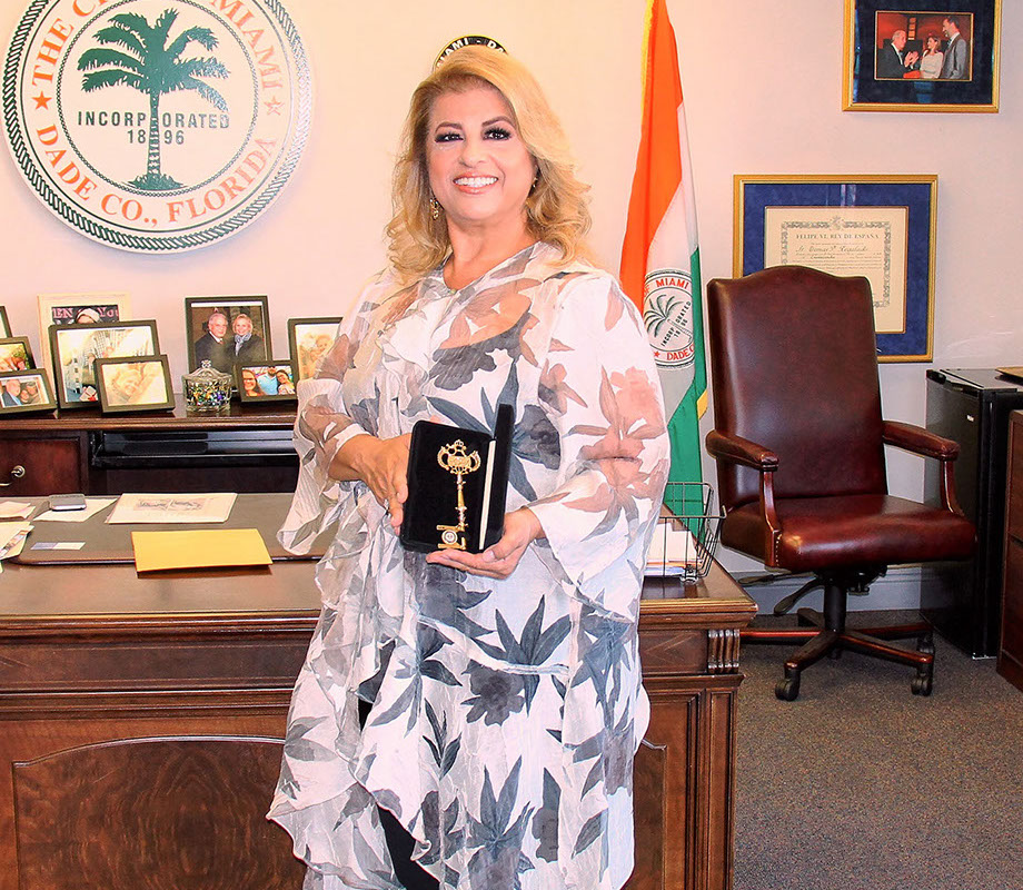 En una ceremonia privada en las oficinas del alcalde de la ciudad de Miami, Tomas Regalado. Se le entregaron las llaves de la ciudad a Gloria Hincapie, en compañia de sus familiares y amigos, por los 30 años de vida profesional y su aporte a la sociedad de Miami