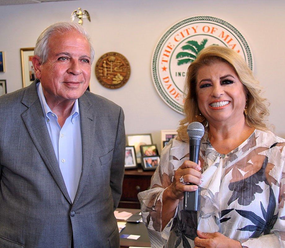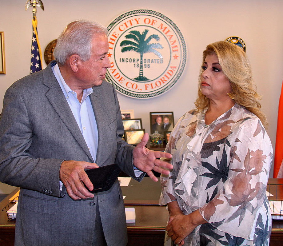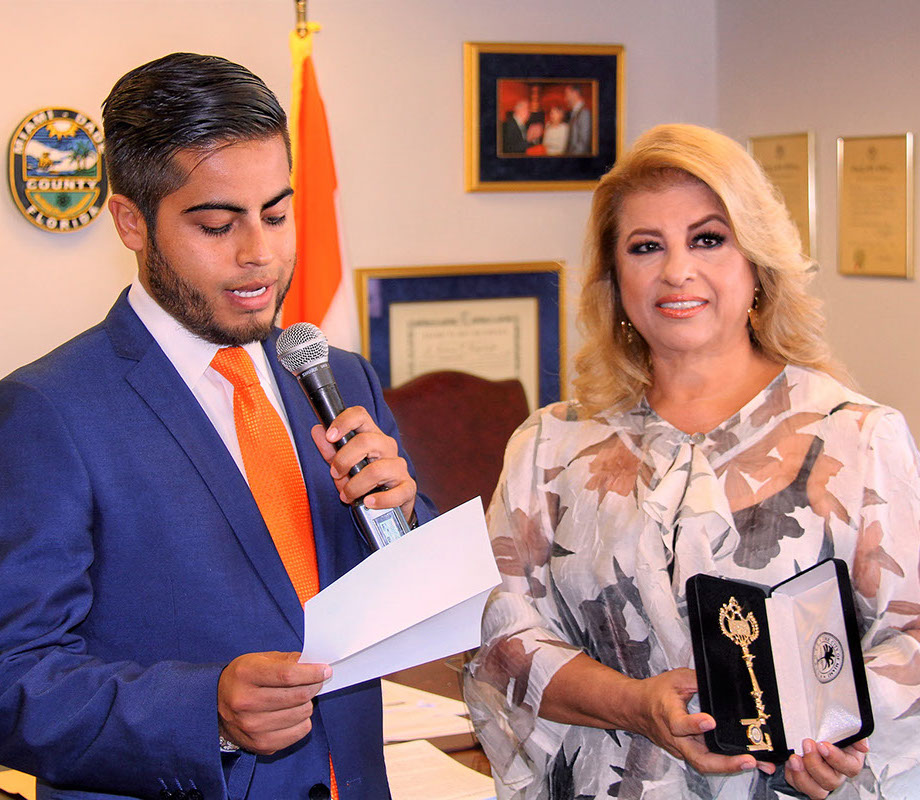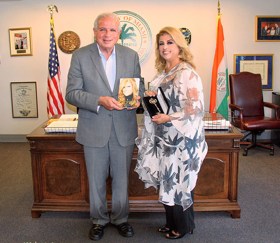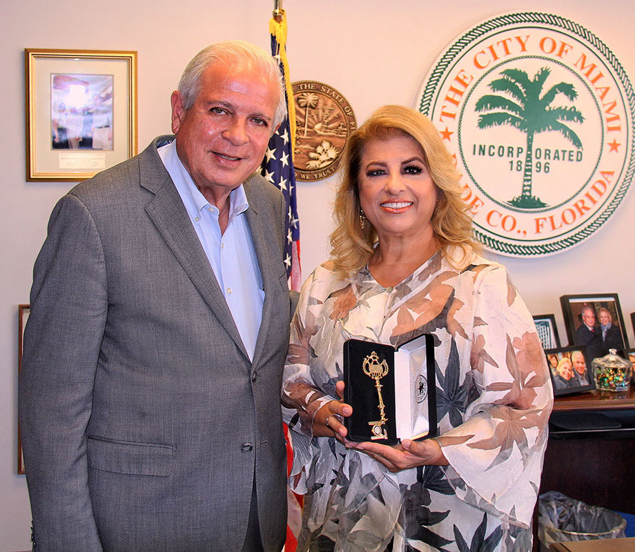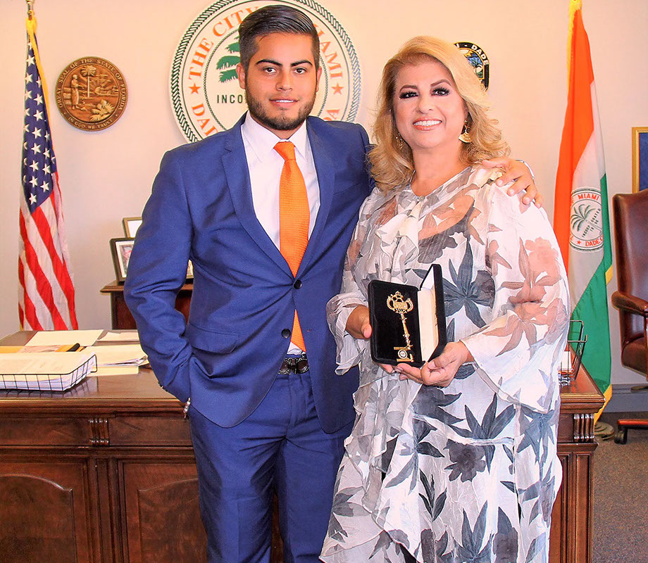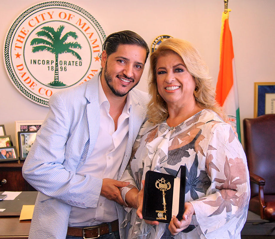 En una ceremonia privada en las oficinas del alcalde de la ciudad de Miami, Tomas Regalado. Se le entregaron las llaves de la ciudad a Gloria Hincapie, en compañia de sus familiares y amigos, por los 30 años de vida profesional y su aporte a la sociedad de Miami